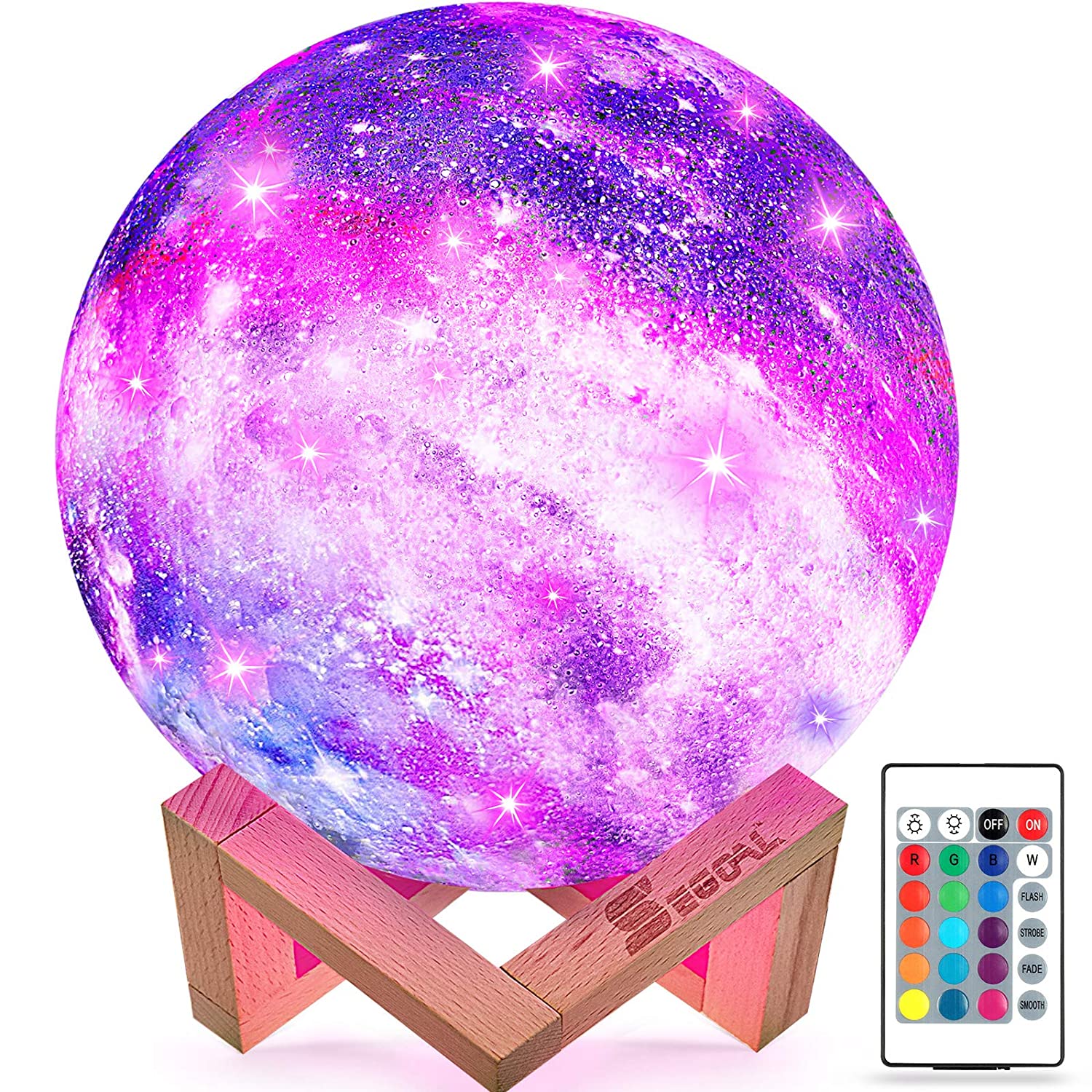 TITLE : 3D Print 16 Color Changing Moon Decorative Night Light Lamp with Remote Touch Control Adjustable Brightness & USB Recharge Cable for Kids Adults Lovers Birthday Gifts 3D Printed LED Moon Lamp Premium with Stand and USB Cable