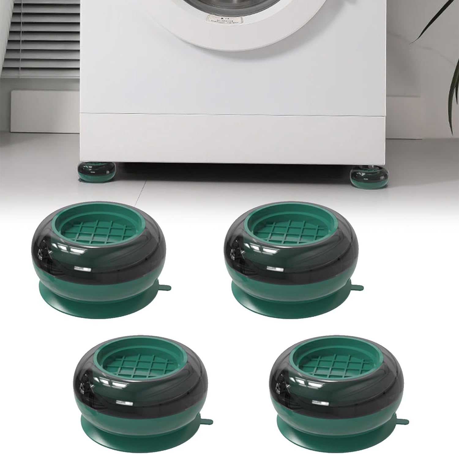 Anti-Walk Dryer Washer Vibration Pads → Simply place the shock absorbed under each foot of the washing machine or dryer and attach the suction cups to the floor for a non-slip and shock absorbing effect. Suitable for most washing machines or dryers and furniture.