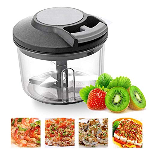 • ★ When we are cutting onion in the kitchen, it will make our eyes watery. With this manual food chopper, it will not be a problem any more .The quick pull chopper can chop the vegetable with several pulls. We also can use it for nut/herb/ pesto/carrot/ hummus/salsa/guacamole, meat for meatloaf/ice, and more. We also can replace the blades by the white sticks. So the hand pull blender is great for mixing sauces.