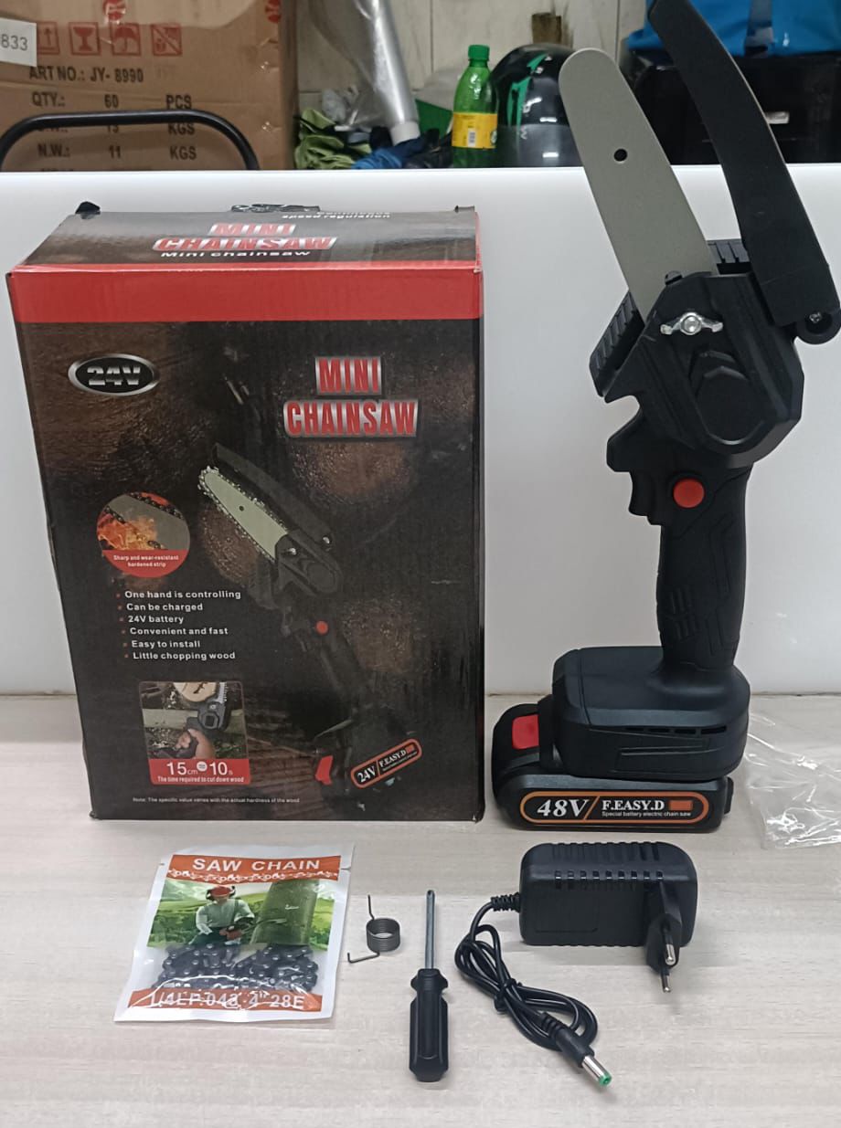 TITLE: 48V Cordless Chainsaw Procut One Hand Lightweight Portable Battery Operated 4inch Mini Chain Saw for Pruning Tree Branch Wood Cutting With 1 Pc Li-ion Chargable Batteries with charger