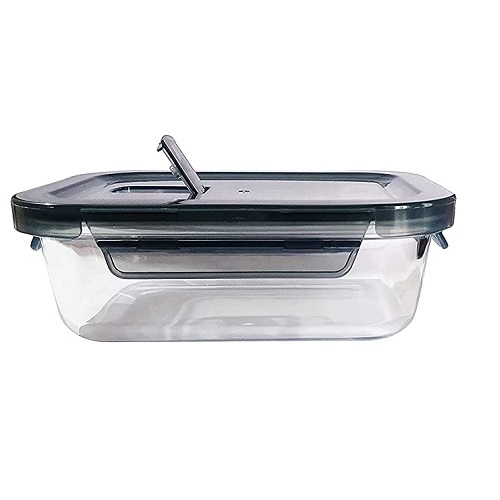 TITLE : Glass Meal Box, Lunch Box with Compartments with Airtight Lids, Microwave Oven Safe Glass Lunch Box for Office Men, Rectangle Shape, Transparent, 1 Litre Capacity, Set of 1 Rectangular Borosilicate Glass Food Storage Container Set with Air Vent Lid Airtight Lid Microwave Containers, Glass Lunch Box