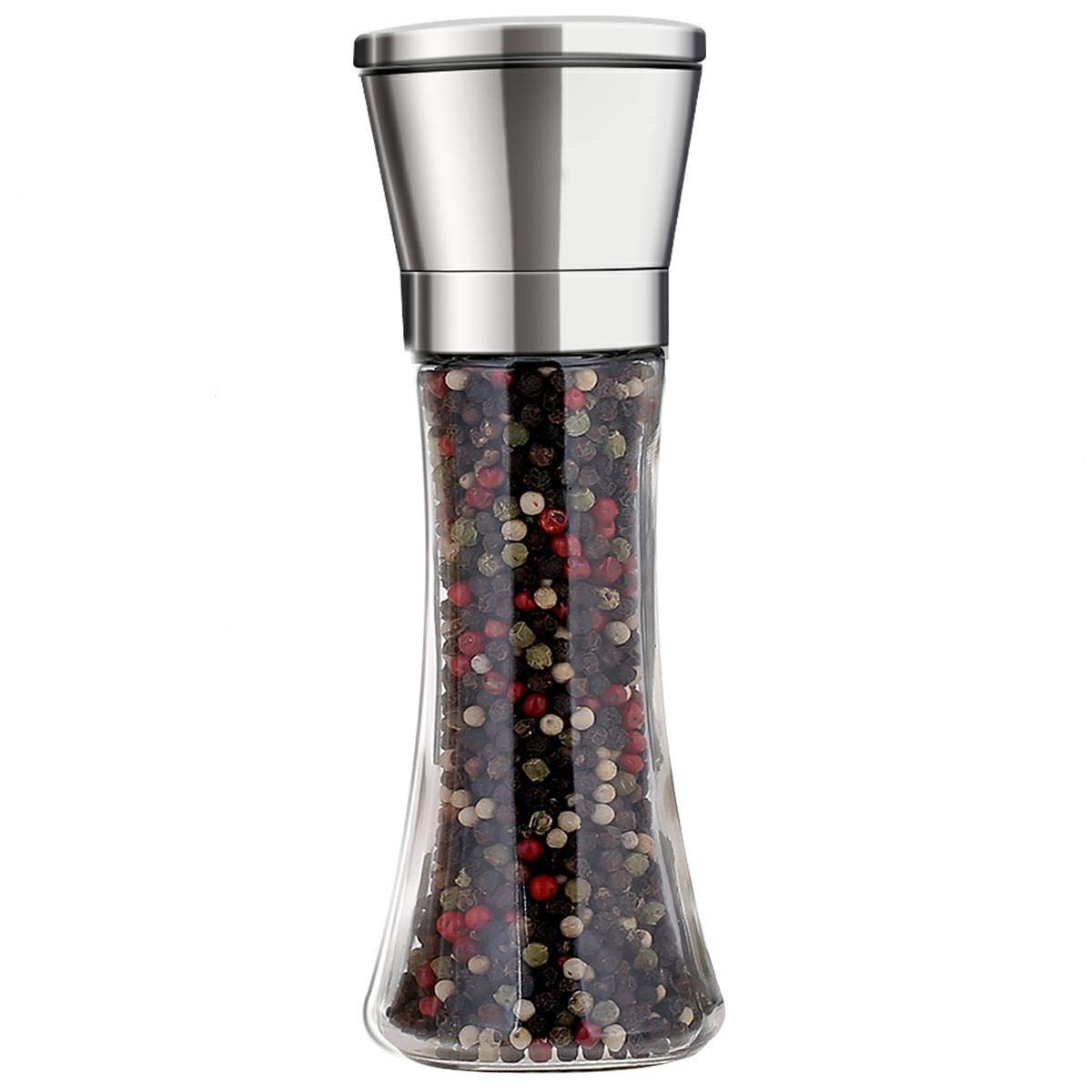 TITLE : Stainless Steel Salt and Pepper Crusher- Adjustable Ceramic Sea Salt Crusher & Pepper Crusher- Tall Glass Salt and Pepper Shakers – Pepper Mill & Salt Salt & Pepper Crusher (Pack of 1), Spice Rack, Salt & Pepper Grinder, Salt and Pepper Shaker with Adjustable Coarseness Pepper Mill Shaker Crusher Salt Grinder Salt Pepper Stainless Steel Grinder/Crusher/Shaker with Adjustable Coarseness Pepper Mill Shaker and Salt Grinders ( Pack of 1)