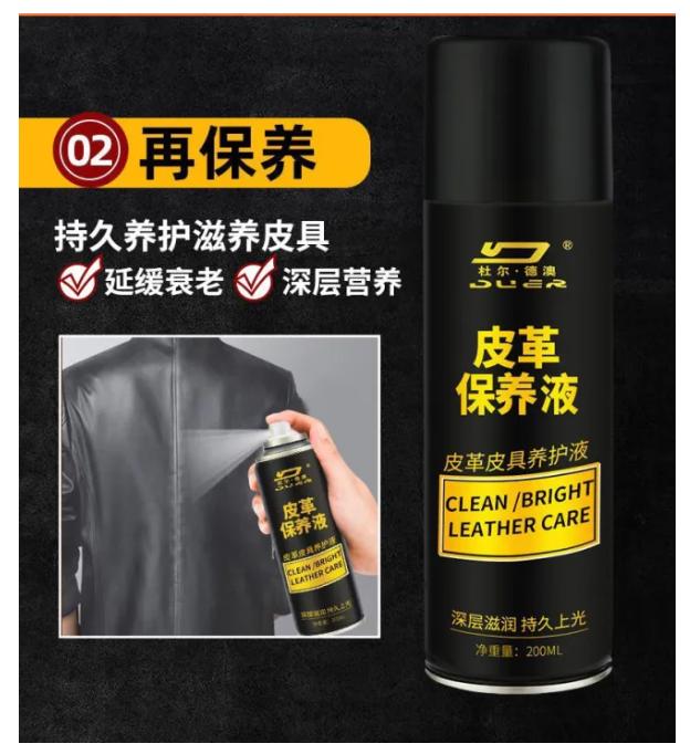 TITLE : a bottle of DUER Leather Care Stain Remover Cleaner & Conditioner LEATHER CLEAN & BRIGHT LEATHER CARE SPRAY