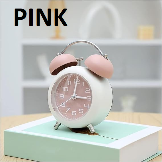 TITLE: Metal Alarm Clock Double Bell Metal Home Kids Room School Office (Pink)