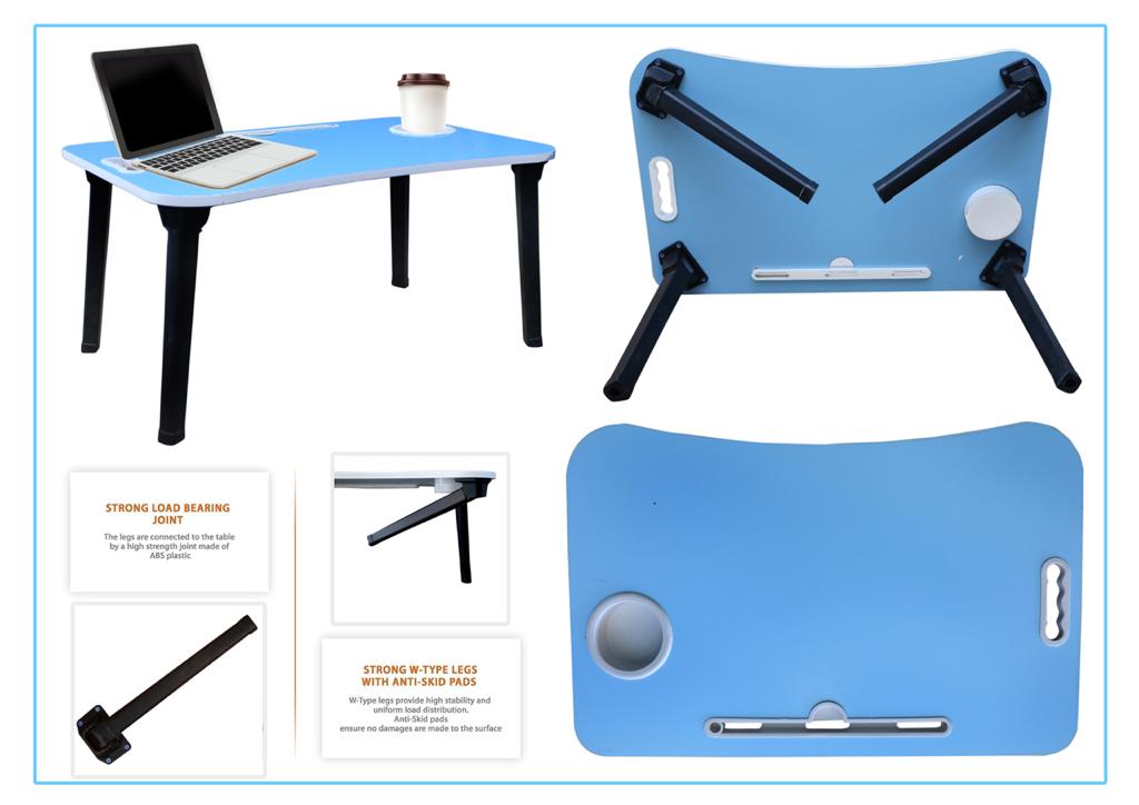 Durable and Sturdy structure: Made of powder-coated metal tubes and high-quality Engineered Wood top board. This Laptop Table have good compression resistance .Not only work as a laptop table but also as a TV Dinner Tray, serving table for patients/kids, Standing Desk for office workers, Book Writing Desk for kids, Tablet Holder, Standing Desk/Stand Up table. Suitable from 5-year-old child to 80-year-old senior. A smooth surface laptop table can use for surfing the internet, reading book, painting work, enjoy leisure snack time, serving breakfast, enjoy family time on your bed, sofa, couch, floor, lawn etc. Indoor or outdoor. Added Coffee Cup / Water Bottle Holder as Addition Feature. Using it for simple dining table, laptop computer table, studying desk, serving table, or any other scenes you want for reading/writing/drawing/playing board games/models puzzles arts. Unique design and beautiful finish: It features anti-slip legs so that the laptop will not skid while using. No assembly required, foldable frame for easy carry and storage. Simple design . You can use in the office, Home, car etc.