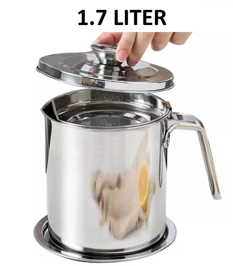 TITLE : Oil Filter Pot | Bacon Grease Container with Strainer,Used Cooking Oil Container Kitchen Frying Oil Container Tank Pot Strainer Filter (1.7L) Oil Filter Pot, Cooking Oil Filter Practical Oil Filter Removable Stainless Steel for Kitchen for Frying for Cooking