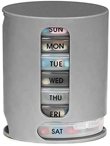 Organize Your Pills and Vitamins! Take the guesswork out of taking medication! Pill Pro organizer has seven portable trays, each with four labeled compartments to coordinate pills and vitamins by time of day. Never miss a dosage – every pill has its place for the entire week. Easily slide out the tray you need for the day and the next day’s tray automatically drops into place. Once your done with the tray, fill it back up with your pills and vitamins, remove the cover and drop in back in.