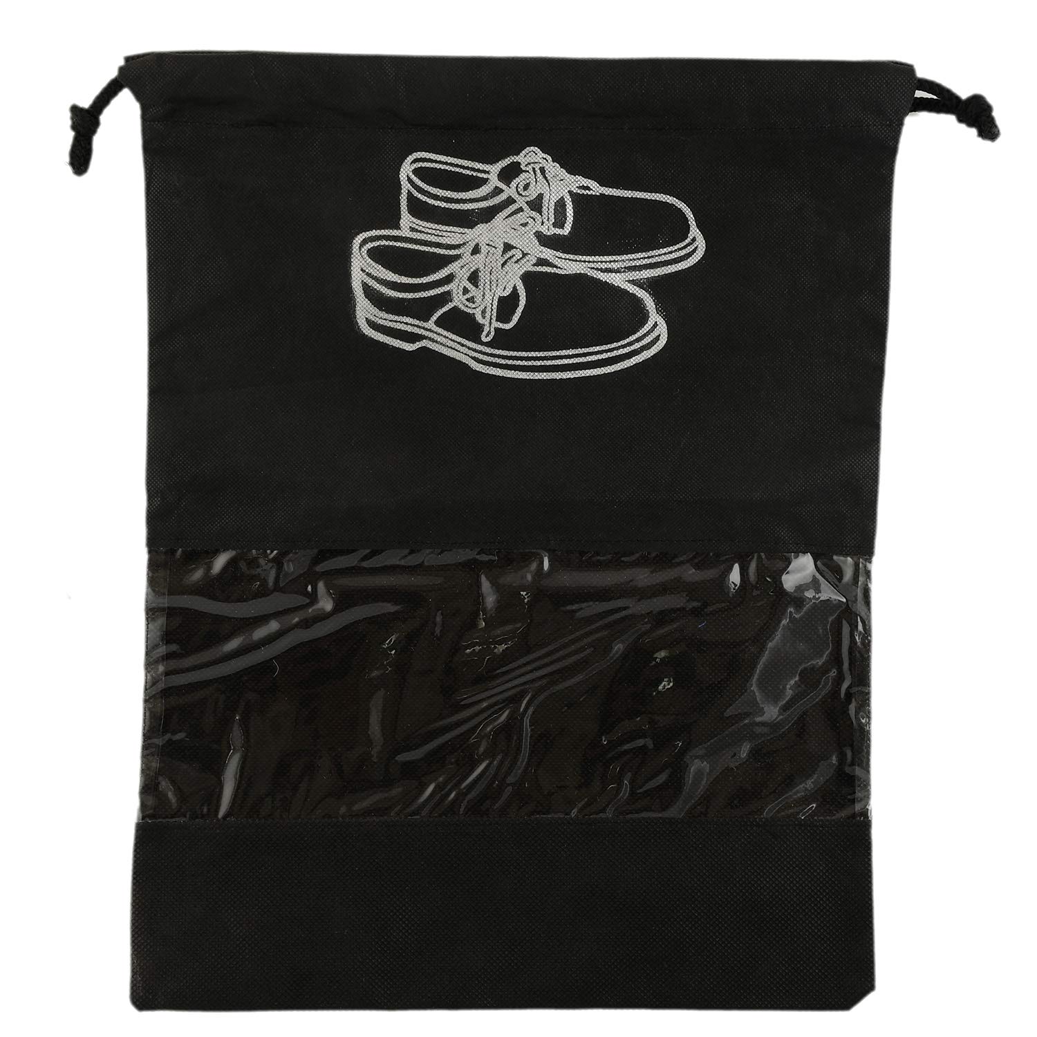 TITLE : Shoe Cover/String Bag Organizer|Shoe Print & Non Woven Material|Transparent Window Shoe Cover Bag for Shoe Organizer in Travelling