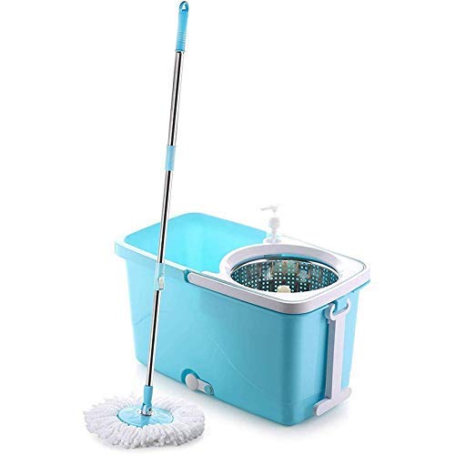 TITLE : ABS Plastic Mop with Stainless Steel Wringer Basket and 2 Microfiber Refills – Floor Mopping System Royale Steel Wringer Spin Mop With Big Wheels (Aqua Green, 2 Refills) Clean Home PSB 10 Plastic Magic Mop