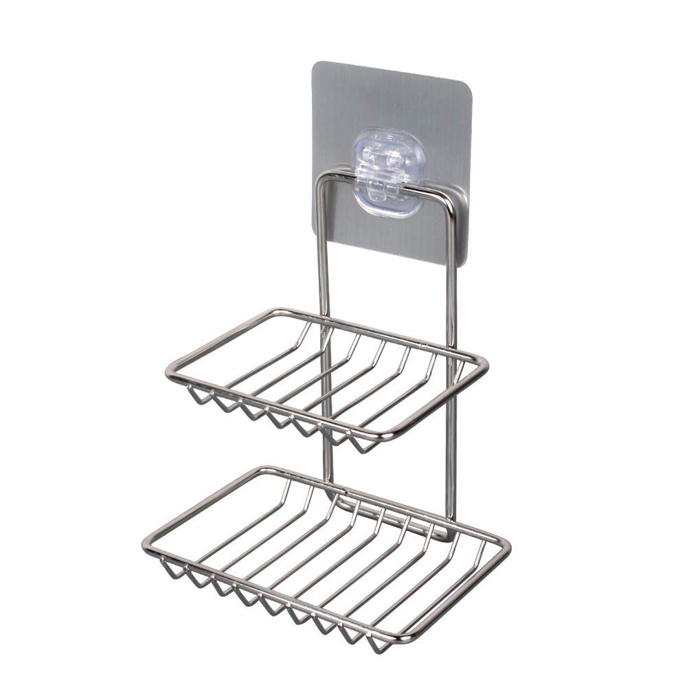 Wall Mounted Double Layer soap Dish Holder Stainless Steel Wall Hanging Soap Storage Rack for Bathroom-with Self Adhesive Magic Sticker