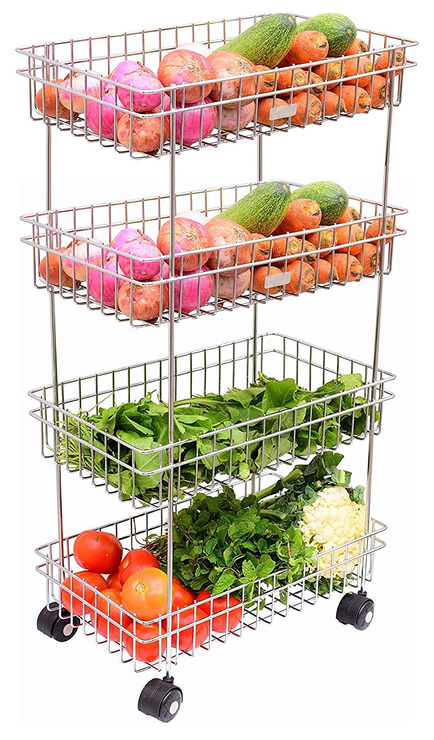 TITLE : 4 Layer Stainless Steel Fruit and Vegetable Storage Stand Basket Trolley Modern Kitchen Storage Rack (Silver) Kitchen Trolley Storage Rack Fruits & Vegetable Onion Basket Kitchen Organizer Vegetable Stand Rack for Kitchen Stainless Steel(Kitchen Organiser) Fruit and Vegetable Stand Basket Trolley Onion Potato Kitchen Storage Stainless Steel Rack (4 Layer) 4 Layer Stainless Steel Kitchen Trolley Rack Fruit Vegetable Storage Rack Vegetable 4 Layer Stainless Steel Kitchen Trolley Rack Fruit Vegetable Storage Rack Vegetable