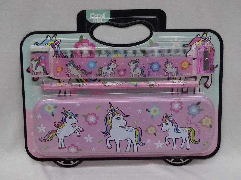 TITLE : Plastic UNICORN STATIONERY SET Stationery Set With Compass Box