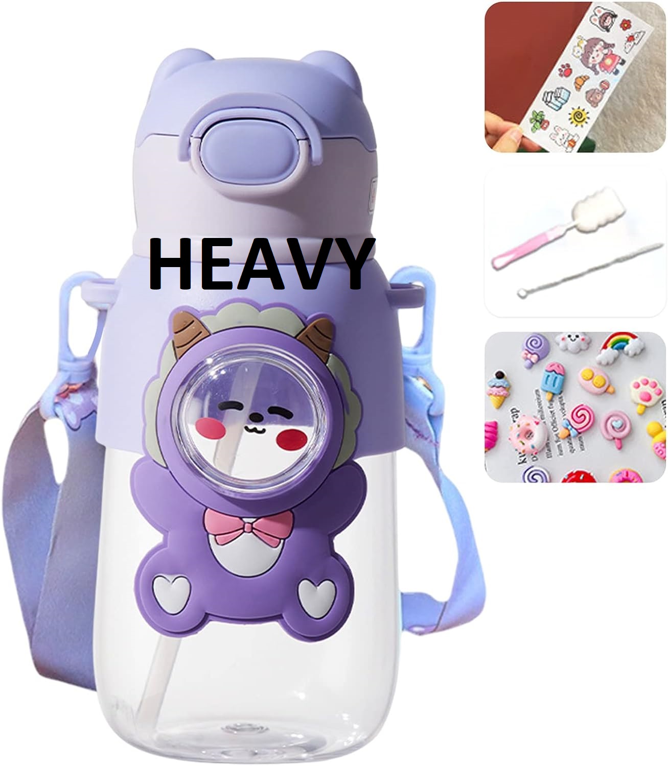 - ★ The cute water bottle is equipped with an adjustable shoulder strap, you can adjust it to different lengths to fit kids and adults.